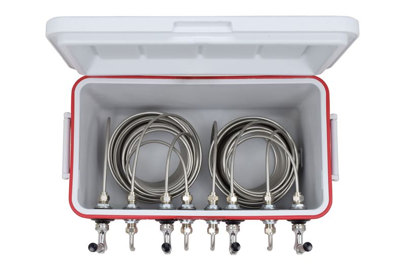 ![]() 50 Feet (ft) Length and 48 Quarts (qt) Capacity Four Faucet Bartender Style Box with Stainless Steel Contact |